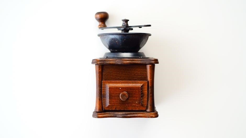 Ensure no oils or residue accumulate‚ as this impacts flavor. Refer to your instruction booklet for specific disassembly guidance. A clean grind chamber ensures consistent grinding and fresh-tasting coffee.