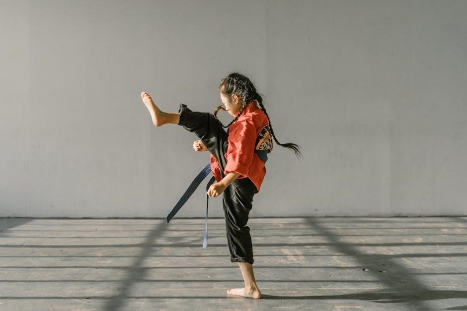 PDF guides often emphasize the connection between stance, balance, and power output, crucial for impactful strikes and blocks. Online resources highlight the progressive development of power as students advance through the forms.